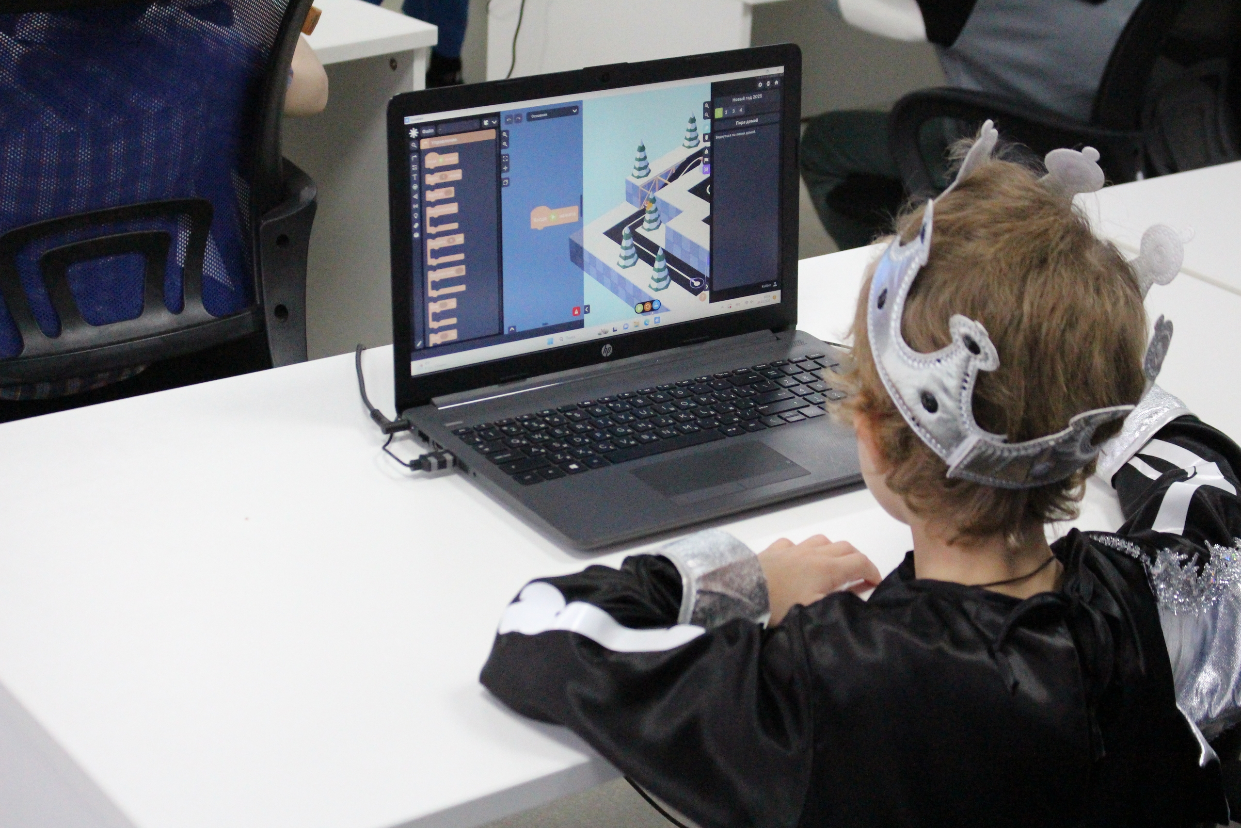 1. Программирование «Кулибин»: Каждый участник стал повелителем кода! Написанные строчки программы заставили робо-автомобили послушно прокладывать путь через снежные виражи, чтобы благополучно доставить подарки. Первый код — первая большая победа!
