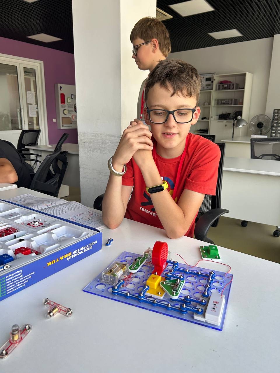 На мастер-классе по схемотехнике собирали электрические цепи и подключали различные приборы к источникам питания, чтобы понять принципы работы электротехники.